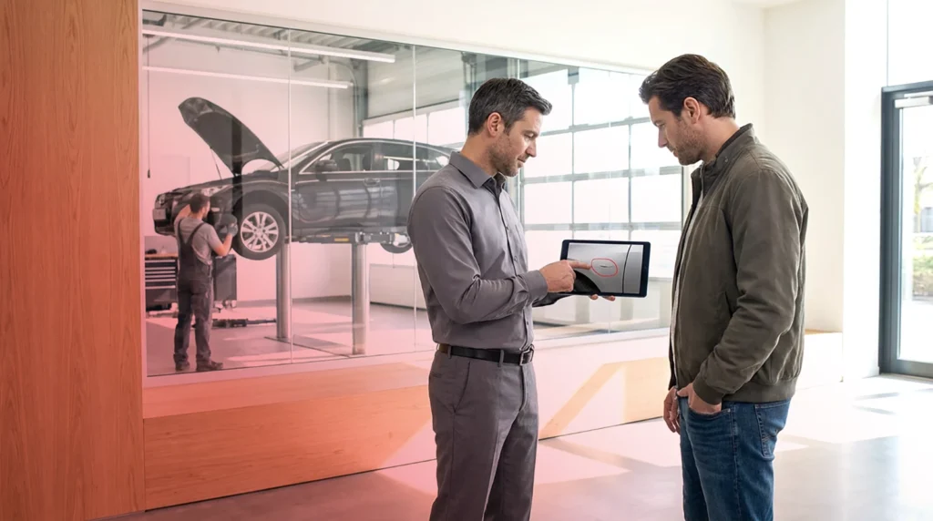 Auf Basis der Begutachtung erstellen wir einen schriftlichen Kostenvoranschlag. Hier fließen Arbeitsaufwand, Material, mögliche Demontage und eventuelle Nebenarbeiten ein (z. B. Kunststoffreparatur, Korrosionsschutz).